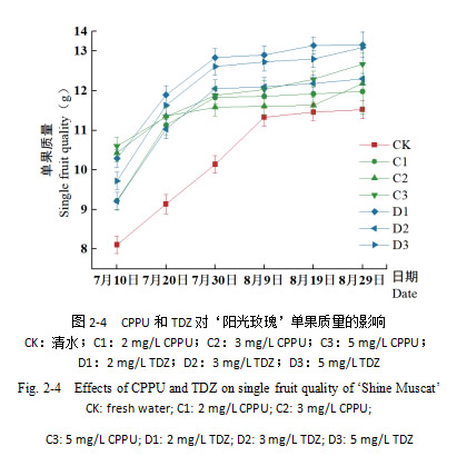 2.4 盛花前CPPU、TDZ处理对葡萄单果重的影响