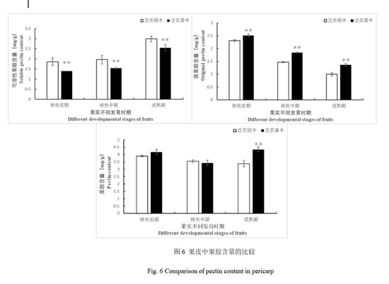 2.4‘沈农香丰’和‘沈农硕丰’果皮中果胶含量的比较