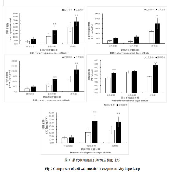 2.5‘沈农香丰’与‘沈农硕丰’果皮中细胞壁代谢相关酶活性的比较