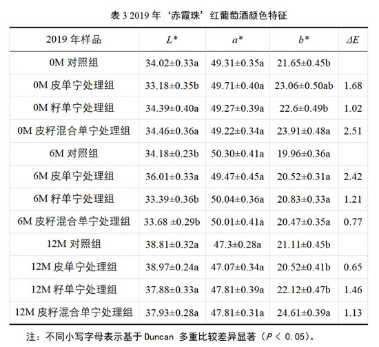 3.1 不同来源葡萄单宁对陈酿过程中‘赤霞珠’葡萄酒颜色和涩感的影响