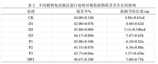 2.2 植物免疫激活蛋白对葡萄新梢节间长度的影响