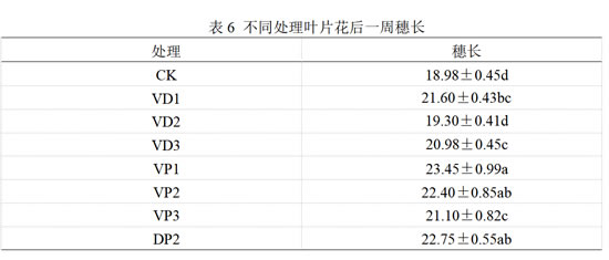 2.6 植物免疫激活蛋白对葡萄花后一周穗长的影响