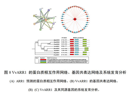 3.8 VvARR1 的蛋白质相互作用网络、基因共表达网络及系统发育分析