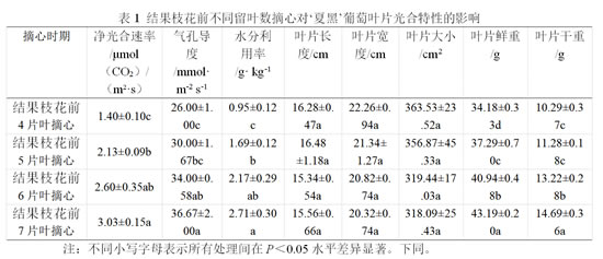 2.1 结果枝花前不同留叶数摘心对‘夏黑’葡萄叶片光合特性的影响