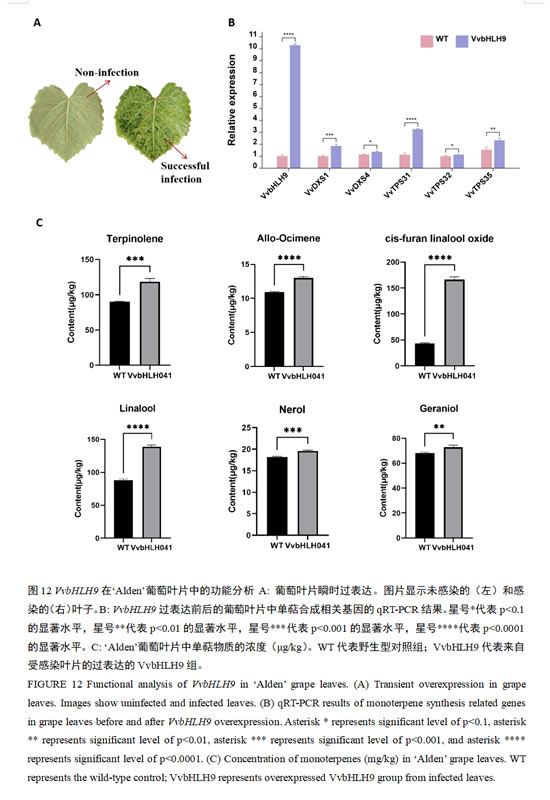 2.11 VvbHLH9过表达促进葡萄单萜代谢物合成