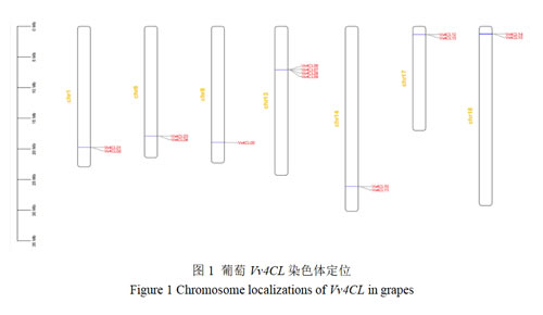 3.2 葡萄4CL家族成员的染色体定位
