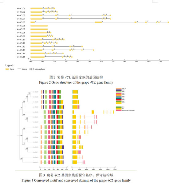 3.3 葡萄4CL家族的基因序列结构、保守基序及结构域分析