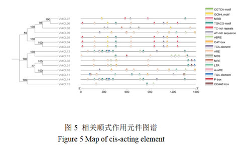 使用TBtools软件(GXF Sequences Extract工具)提取葡萄4CL基因家族成员转录起始位点上游1500 bp的序列,提交到PlantCare网站