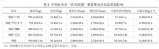 2.1 砧木差异对‘阳光玫瑰’葡萄果实品质的影响