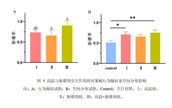 高温与驱避剂交互作用对果蝇驱避行为选择偏好及空间分布的影响
