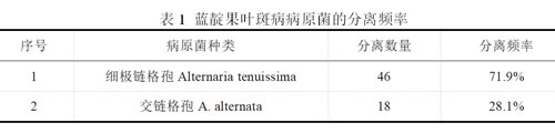 2.1.4 蓝靛果叶斑病病原菌分离频率
