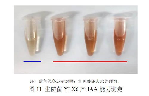 综上所述,通过对生防菌YLX6产吲哚乙酸(IAA)和ACC脱氨酶能力的检测,其间接展示了良好的促生能力。