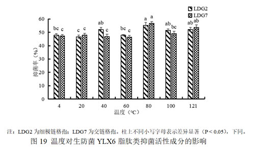 (1)温度对生防菌YLX6脂肽类抑菌活性成分的影响