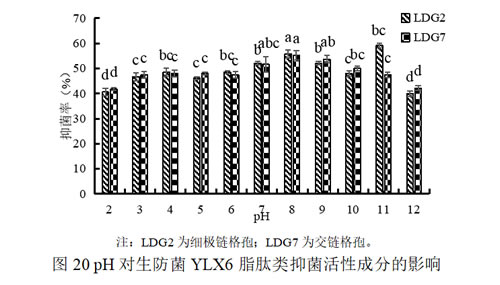 (2)pH对生防菌YLX6脂肽类抑菌活性成分的影响