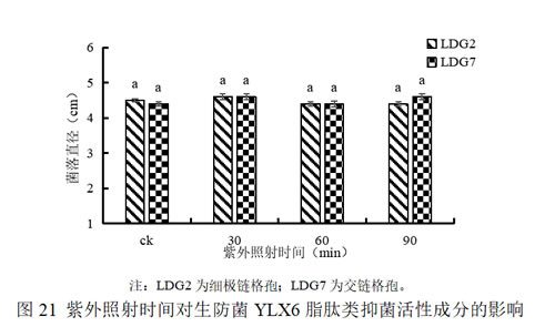 (3)紫外线对生防菌YLX6脂肽类抑菌活性成分的影响
