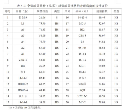 2.3.1 蓝靛果链格孢叶斑病抗病资源的评估