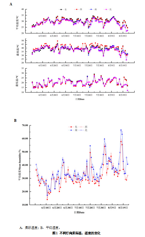 2.1.1 行向对果际温湿度的影响