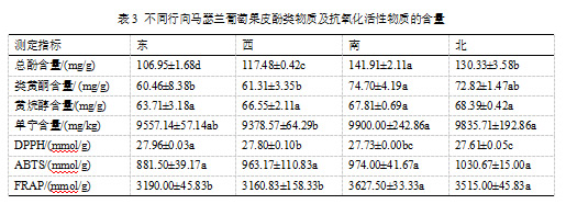2.3 行向对马瑟兰葡萄果皮酚类物质及抗氧化活性物质的影响