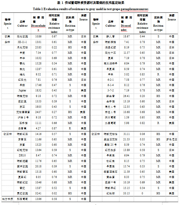 都是避雨或设施促早栽培。灰霉病是设施葡萄生产中的一种重要病害,在葡萄花序期、幼果期、成熟期以及贮藏期均可发生,严重影响葡萄的产量和品质。目前对葡萄灰霉病的防治主要依赖化学药剂,易引发环境污染、农药抗药性、农药残留等问题。从长远来看,利用葡萄自身抗性筛选和培育抗病品种是一种减轻灰霉病危害的有效途径。