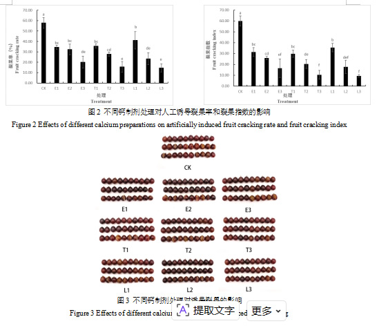 2.2 不同钙制剂处理对人工诱导裂果的影响