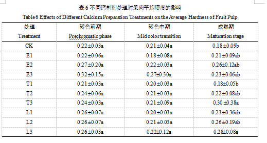 2.6 不同钙制剂处理对果肉平均硬度的影响