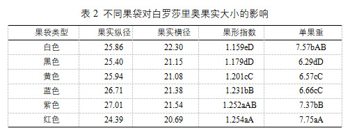2.2 不同颜色纸袋对果实大小和果形的影响