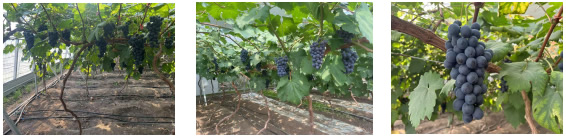 2020年春从浙江省农科院园艺研究所引进欧美杂交种‘天工墨玉’葡萄一年生自根苗50株,2021年5月定植于日光温室,2022年见果。