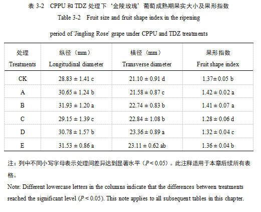 2.3 CPPU、TDZ处理对成熟期葡萄果实大小及果形指数的影响