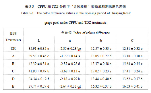 2.4 CPPU、TDZ处理对成熟期葡萄果实着色程度的影响