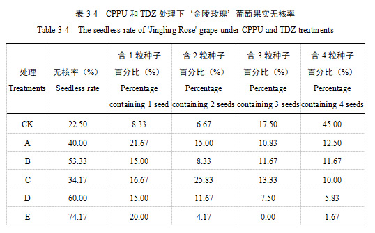 2.5 CPPU、TDZ处理对葡萄果实无核率的影响