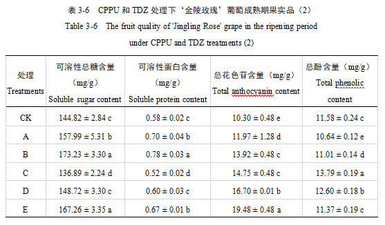 2.6 CPPU、TDZ处理对成熟期葡萄果实品质的影响