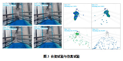 通过仿真实验结合台架试验(图3),进行脱粒机理分析,揭示葡萄振动脱粒存在两种主要形式:撞击式脱粒:果粒直接受到振动杆击打,当冲击力超过FBF时发生破裂,是破损的主要来源。振动惯性脱粒:果粒因周期性简谐振动产生惯性力,当惯性力超过FDF时脱落,可有效降低破碎率。