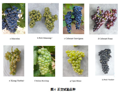 对马瑟兰、小芒森、赤霞珠、品丽珠、小味儿多、贵人香、白玉霓、熊岳白等8个品种(图4)进行了参数测试,测量了多个品种得到直径,FDF,FBF,计计算得到CB,在仿真试验的理论基础上多品种正交脱粒试验,得到了不同品种不同成熟度下较优脱粒参数,及其对应的脱粒率和破损率,确定不适合机械振动收获的品种,试验结果也验证了本研究对脱粒机理分析得出的结论。可以解决由于气候因素导致采摘成熟度不同和大面积种植时采摘时间跨度大、收获区域成熟度不同时的收获参数设置问题,以实现参数精细化调控和提高收获质量。