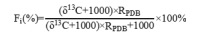 式中:Fi 为器官 13C 丰度(%);RPDB 为碳同位素的标准比值,其值为 0.0112372。