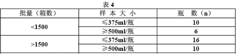 交收检验抽样:按表4规定的抽样方法抽取样本。样本以瓶为单位。
