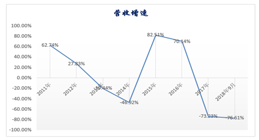 近几年公司的营收增速也如过山车般激增骤降。16年公司营收实现爆发式增长,增长比率高达70.14%,至17年断崖式下滑了7成,而18年在面临退市的一年营收依旧为改善,又进一步下滑了7成多。