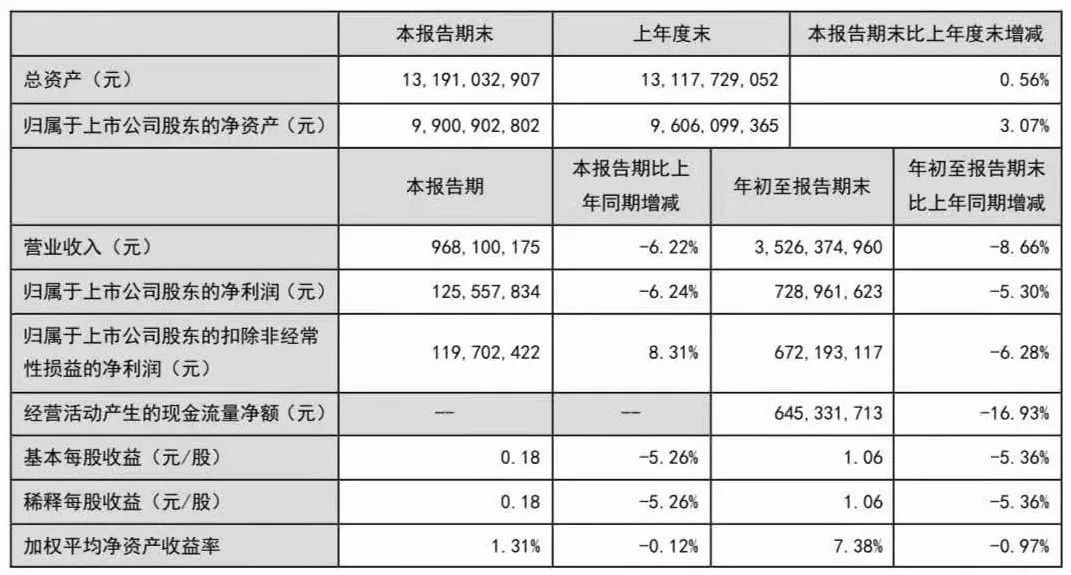 10月29日,张裕A(28.710, 0.25, 0.88%)发布2019年三季报:前三个季度,总营业收入35.26亿元,同比下降8.66%;净利润7.29亿元,同比下降5.30%。其中,第三季度营收9.68亿元,同比下降6.22%;净利1.26亿元,同比下降6.24%。