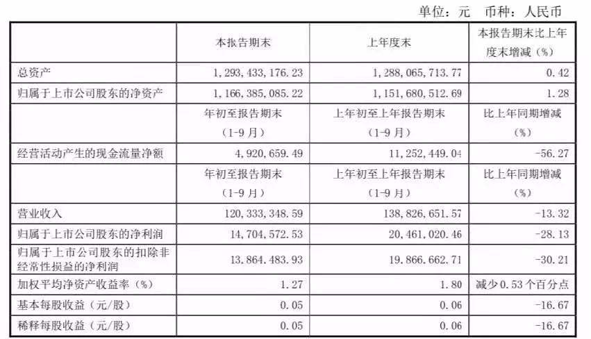 同日,威龙股份发布三季报:2019年前三季度,威龙实现营业收入5.04亿元,同比下降9.16%;净利润2246.78万元,同比大幅下降35.30%。