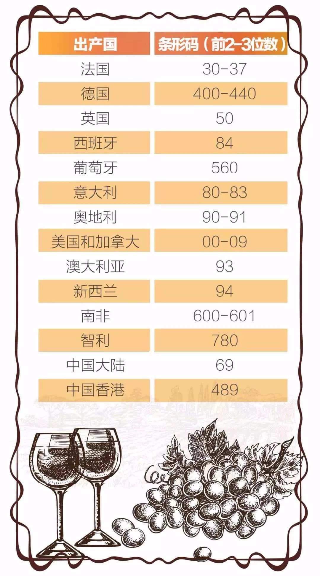 通常进口葡萄酒条形码需看前面的2-3位数字,不同的数字代表不同的国家,如若条形码数字与瓶身标示的国家不相符,那么请勿购买。