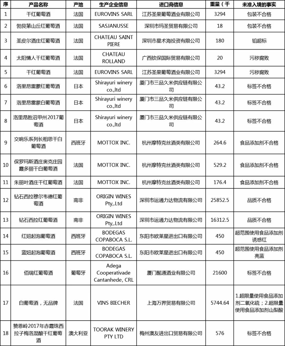 2019年8月,《消费者报道》整理了国家市场监督管理总局(原国家食品药品监督管理总局)收录的自2014年1月~2019年7月对葡萄酒的质量抽检情况。