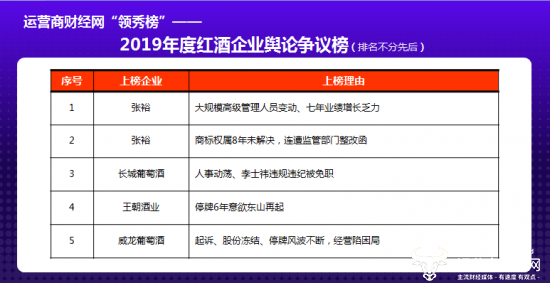 近日,运营商财经网推出了“2019年度红酒企业舆论争议榜”,盘点这一年的行业舆论事件。其中,长城葡萄酒因其人事动荡,中粮酒业副总经理、长城酒事业总经理李士祎因违规违纪被免职。