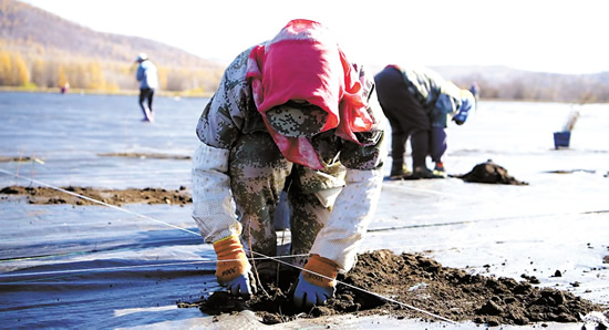 近日,大兴安岭林业集团公司松岭林业局在中心苗圃工人以“五步工作法”完成2万株蓝靛果苗木标准化种植。