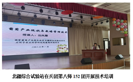为推广葡萄栽培实用技术,提升该地葡萄的管理水平,推动产业高质量发展,2026年1月11日,北疆综合试验站站长边凤霞受邀赴兵团第八师152 团进行“葡萄产业现状与栽培管理技术”专题培训,培训团场职工及农业技术人员共200余人次,培训内容包括以下几个方面: