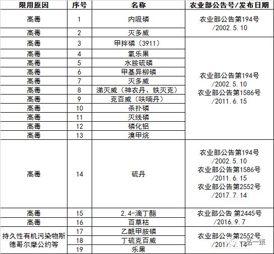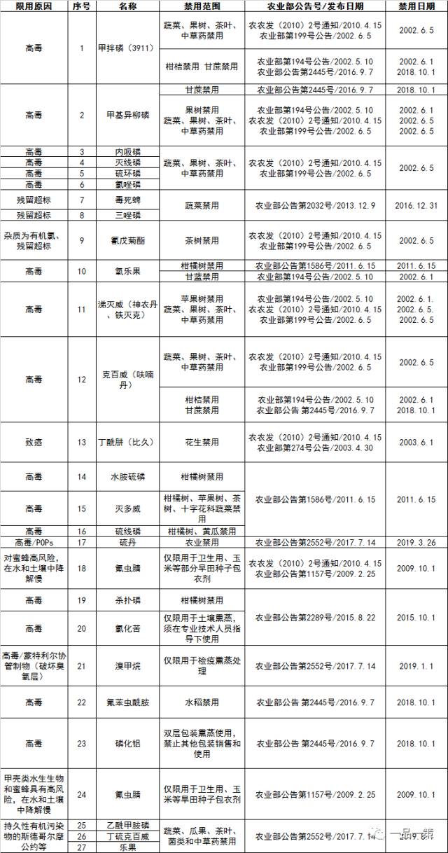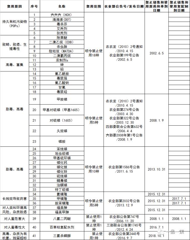 最全农药禁限用清单(截止2017年8月1日)